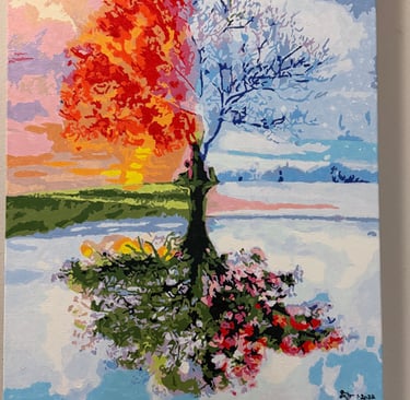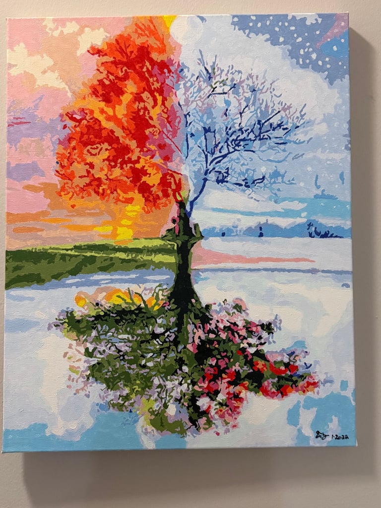 The Acrylic on Canvas are done by me. The diamond art is completed by my lovely wifey