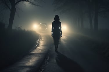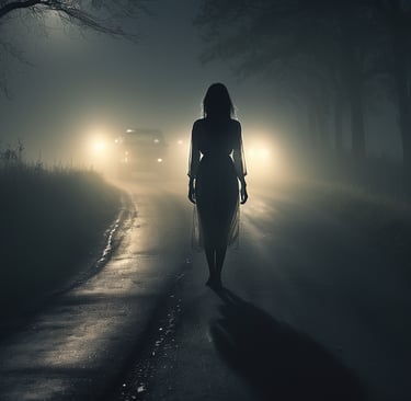 Witnesses generally describe the experience in similar terms. While driving at a moderate speed, they notice a figure materializing at the far edge of their headlights. The figure is almost always identified as female, though specific details such as clothing and facial features remain indistinct. In many cases, the figure appears to move slightly into the roadway, prompting an immediate and often violent reaction from the driver. Brakes are applied abruptly, or the vehicle swerves in an attempt to avoid a collision that, according to every account, never actually takes place.