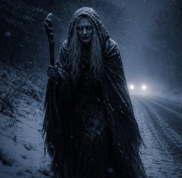 In contemporary terms, she resembles environmental horror more than a slasher or monster. She is the blizzard that traps you. The mountain pass that closes. The road that disappears under snow.