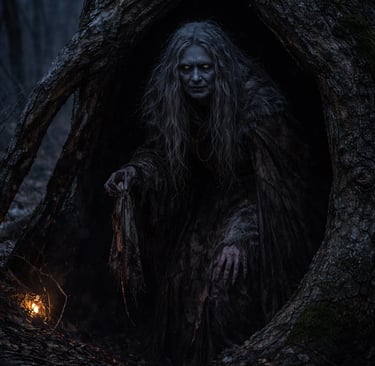 Her home is not a castle or a cave deep in the wilderness. It is a hollow tree. A dark den. A place close enough to villages that children can wander too far and never return.